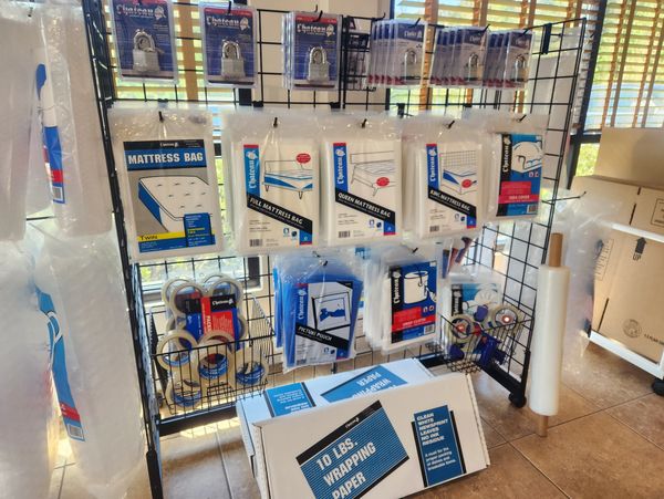 We offer a wide selection of packing and moving supplies such as tape, boxes, bubble wrap, and mattress covers, as well as locks for you storage unit.